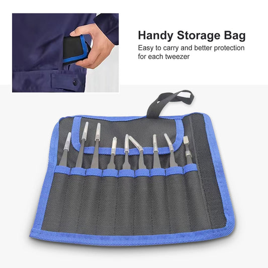 kaverme 9PCS Precision Tweezers Set, Upgraded Anti-Static Stainless Steel of Tweezers, for Electronics, Soldering, Laboratory Work, Jewelry-Making, Model, Craft