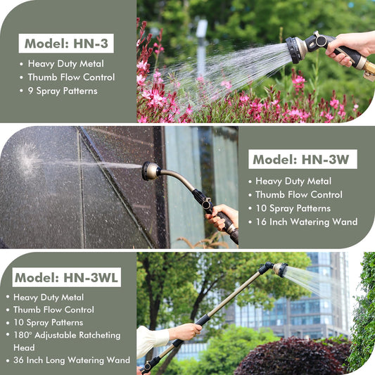 RESTMO Watering Wand Heavy Duty, Metal Garden Hose Wand with 10 Spray Patterns, 15-Inch Long Hose Nozzle Sprayer with Thumb Flow Control, Ideal to Water Hanging Baskets and Shrubs