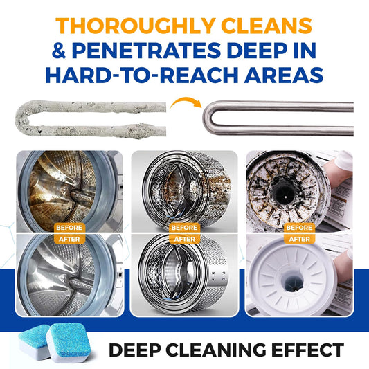 Washing Machine Cleaner Tablets 24 pack Powerful Descaler -Deep Cleaning for HE Front Loader & Top Load Washer Septic Safe Eco-Friendly Deodorizer Clean Drum & Laundry Tub Seal- Year's Supply
