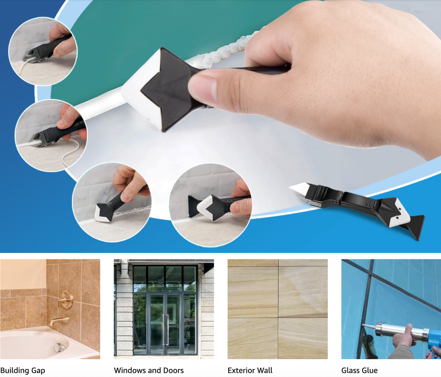 Elevate your sealing and caulking projects with this comprehensive 11-Piece Caulking Tool Kit! This innovative set features a single, versatile 3-in-1 silicone caulking finishing tool with a durable stainless steelhead.1 It's your all-in-one solution for removing old caulk, smoothing new sealant, and achieving a perfect, professional finish in your kitchen, bathroom, windows, and sink joint.