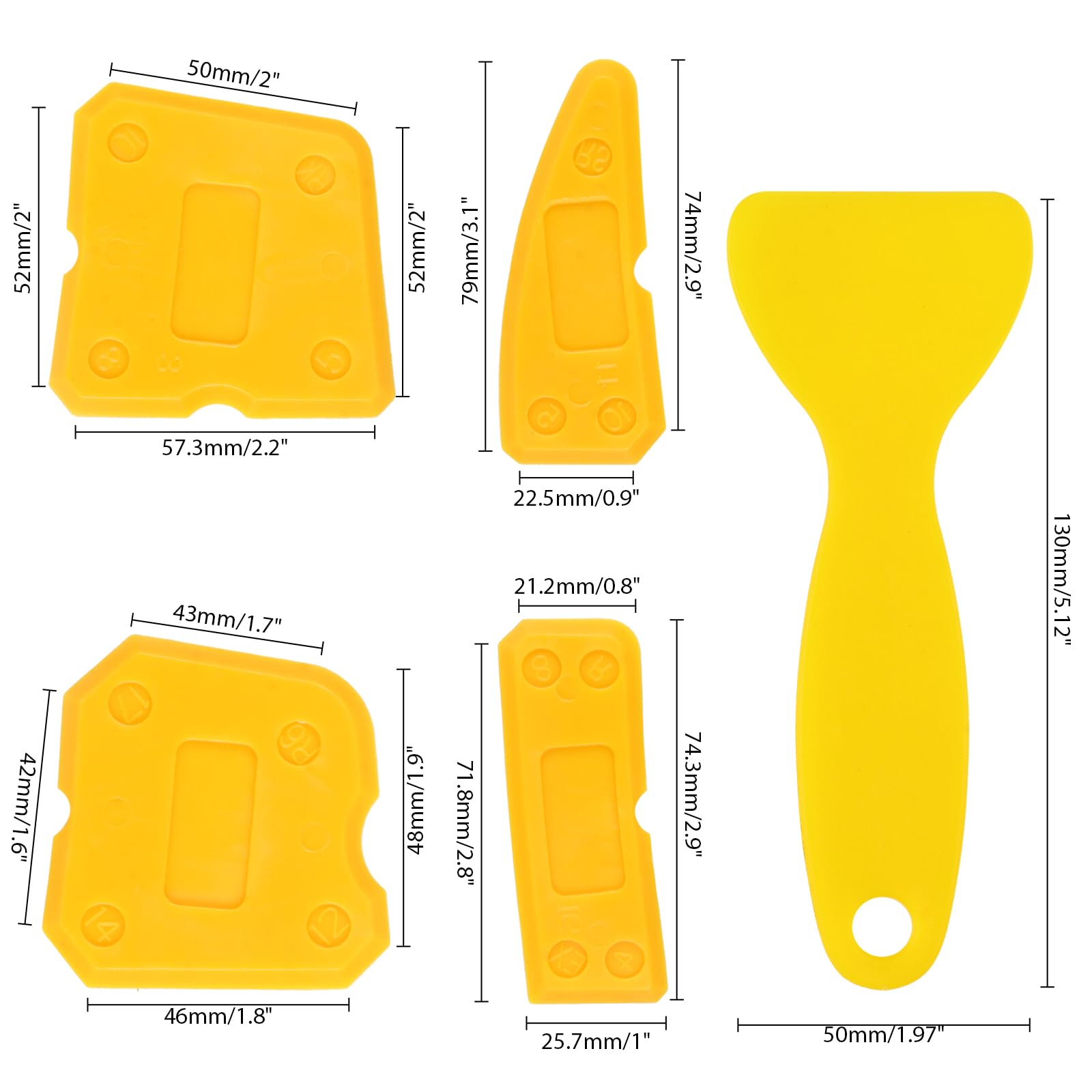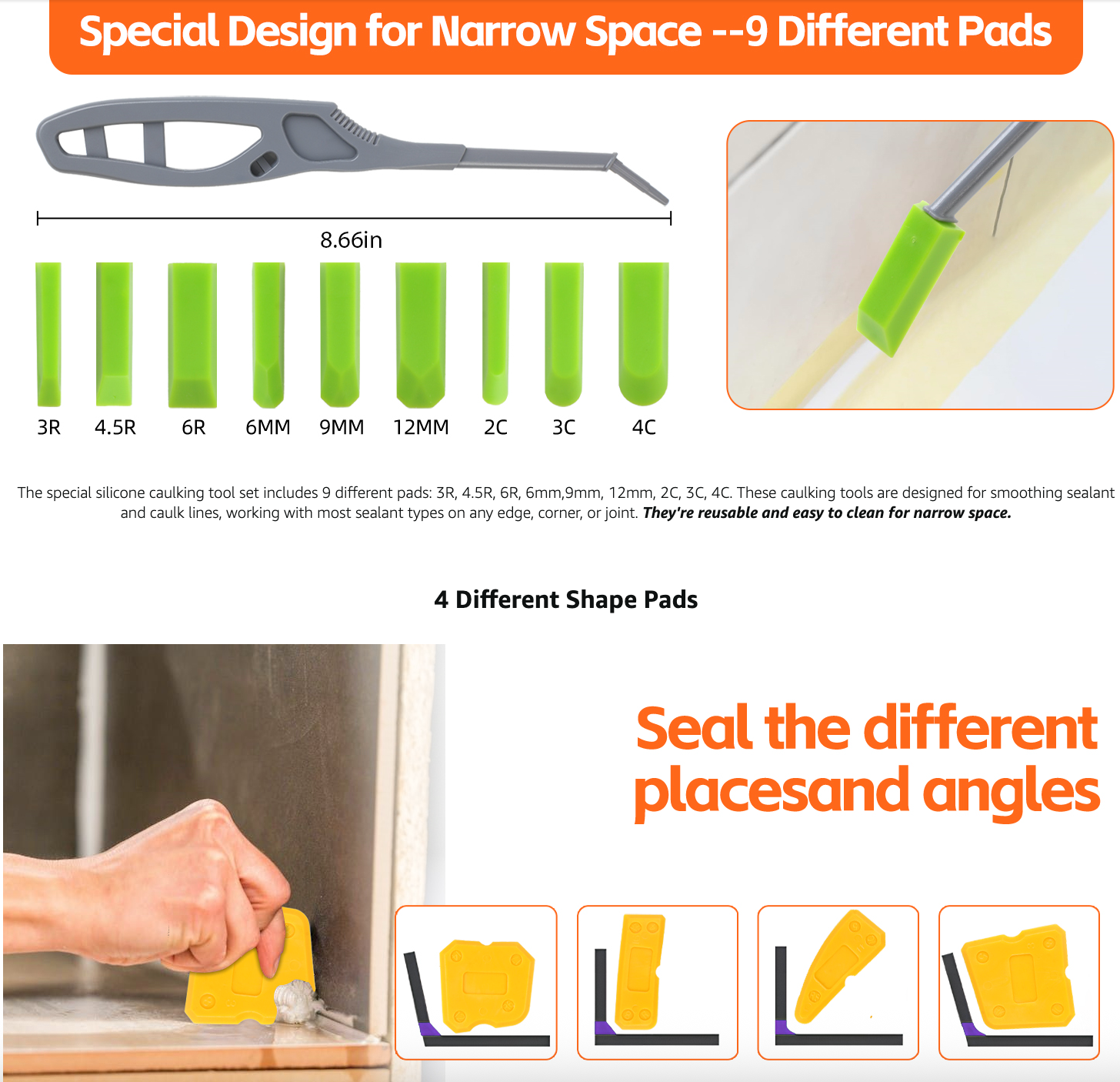 • Perfect for Tight Areas: The variety of sizes and shapes allows you to easily reach and finish caulk in hard-to-access corners and tight joints.