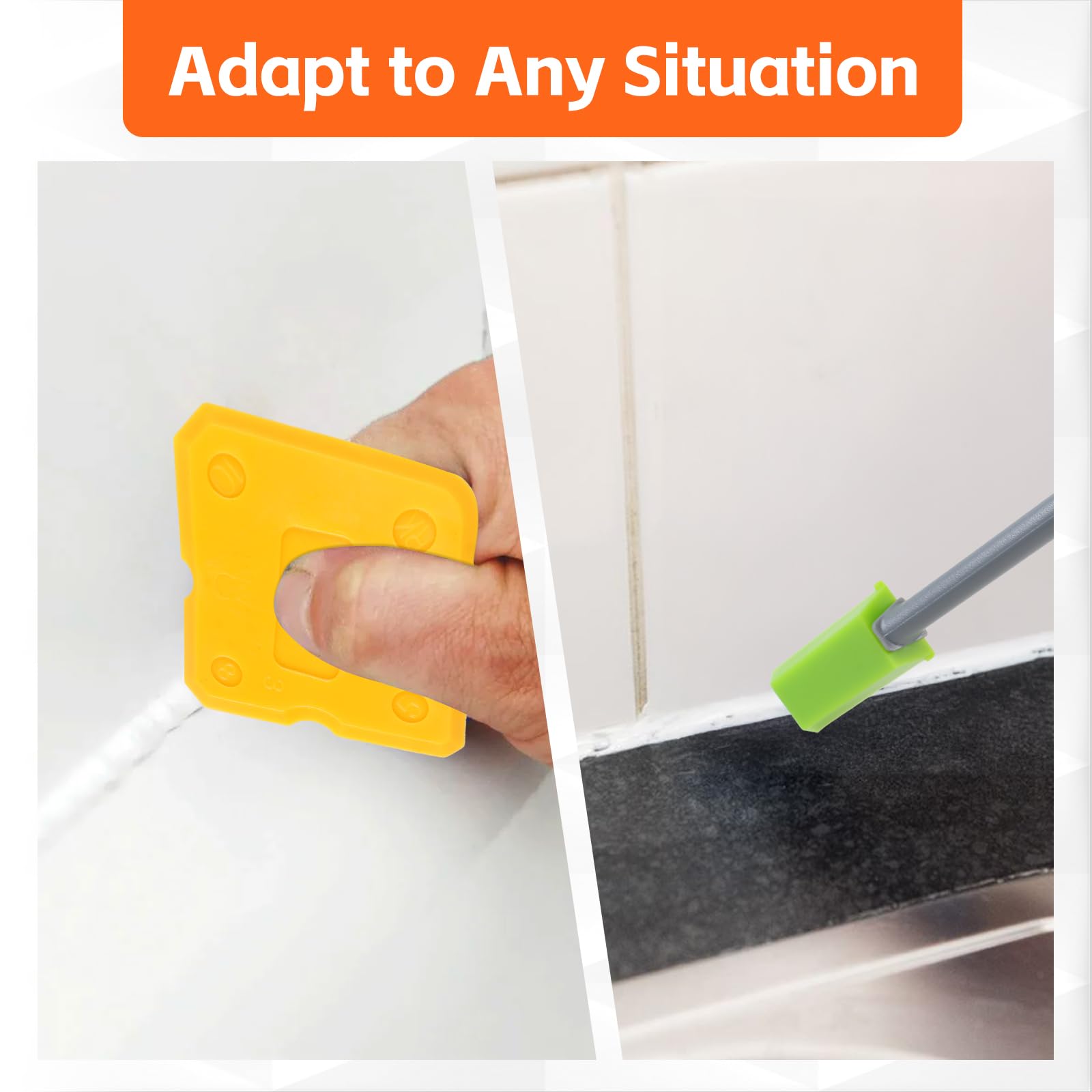 • Ideal Applications: Perfect for finishing joints in kitchens, bathrooms, tanks, doors, windows, and sinks. This tool is perfect for sealing and finishing joints in a variety of areas, including kitchens, bathrooms, sinks, and tanks. It’s also ideal for doors and windows, helping to achieve smooth, clean lines around edges and seams. Whether you're working on caulking, grouting, or sealing gaps, this tool ensures a precise, professional finish for both indoor and outdoor projects.