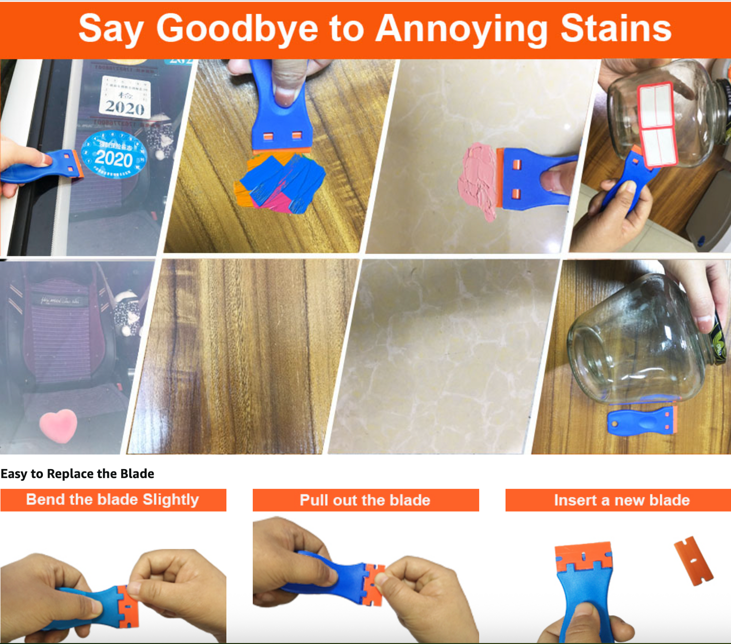 Are you still annoying about the difficult removal of labels, decals, stickers, glue, paint, adhesive, food residue, etc.? Are you still using your fragile nails to remove the above stains? If so, then it is time for you to take KWBGJQ plastic scrapers around your house, and you will find that your cleaning has never been so easy. What Will You Get? Including 4pcs scrapers and 100pcs extra plastic double edged blades. Sufficient quantity and complete your combination can meet your daily needs and replacement.