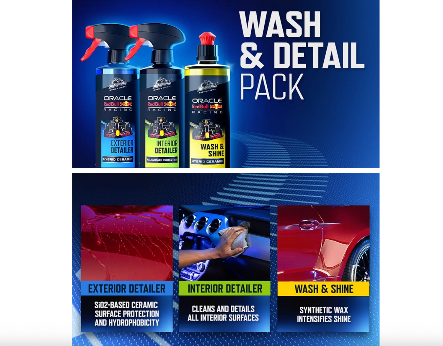 • DEVELOPED WITH ORACLE RED BULL RACING: The Armor All Podium Series 3-Piece Car Wash & Detail Kit was developed to meet the elite performance standards of the Oracle Red Bull Racing team