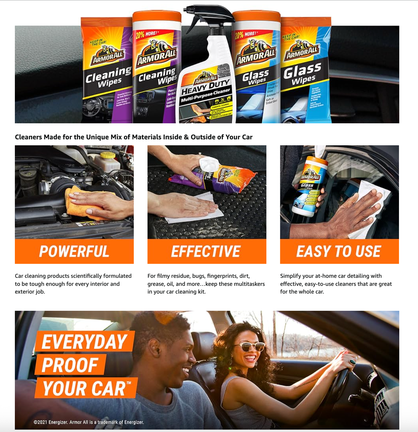 • [Car Cleaning Wipes]: Armor All Cleaning Wipes lift away dirt and debris to reveal your car’s rich, natural beauty without harming delicate automotive surfaces