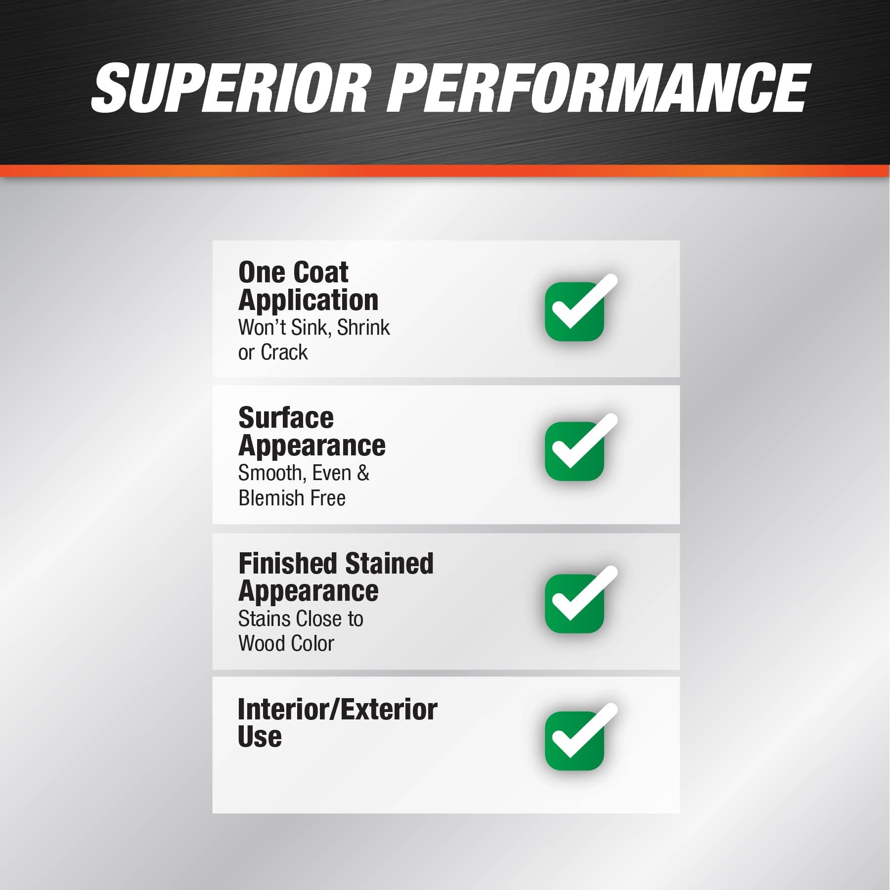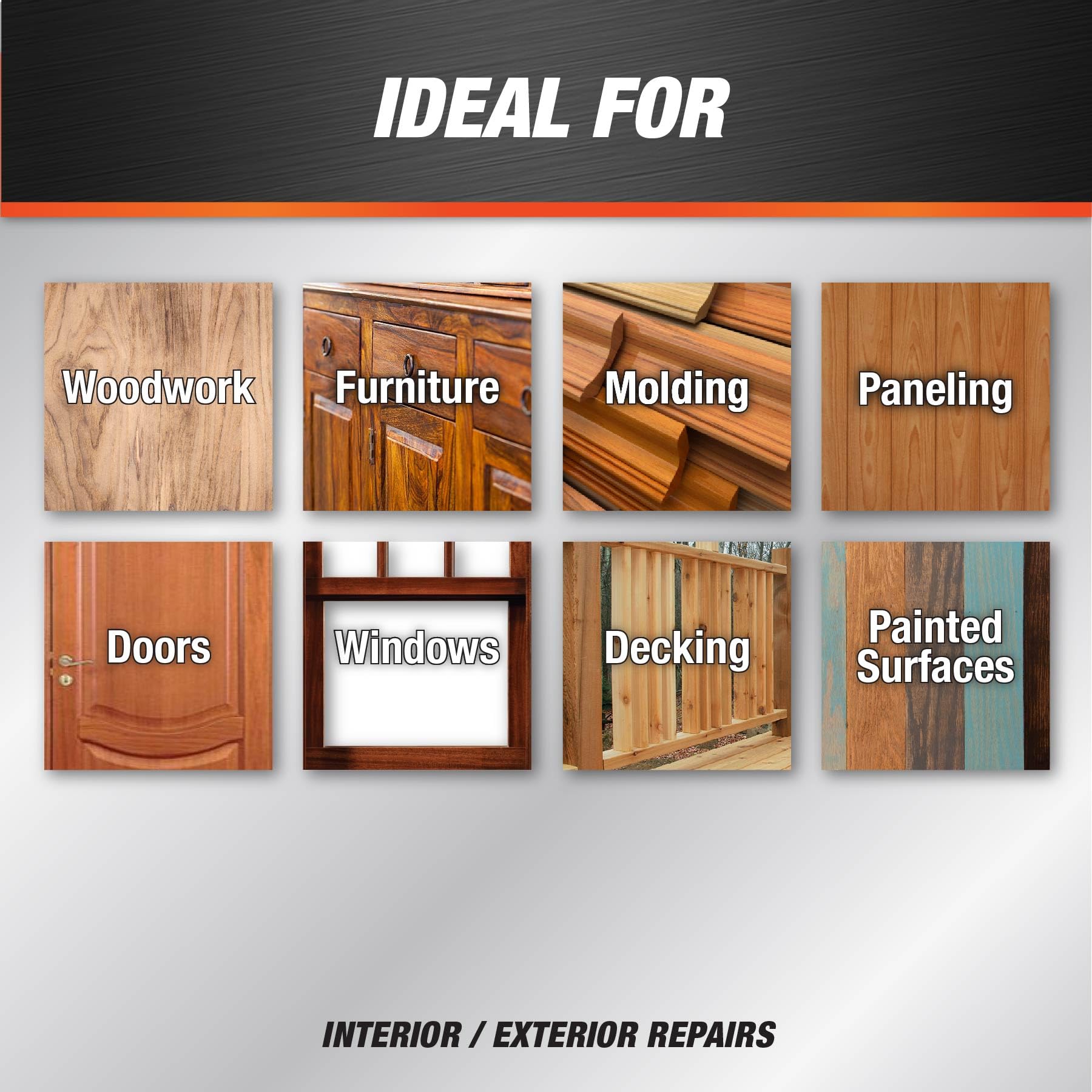 • All Purpose & Versatile: This latex wood filler is designed for use on a variety of wood surfaces, both indoors and out.2 It's a versatile solution for repairing furniture, floors, trim, and more.