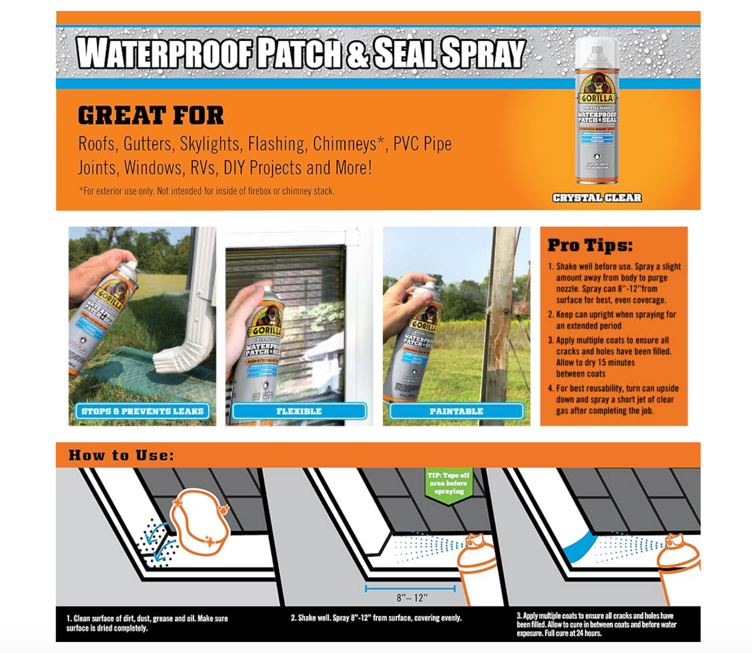 Brand: GORILLA Waterproof Patch & Seal Spray