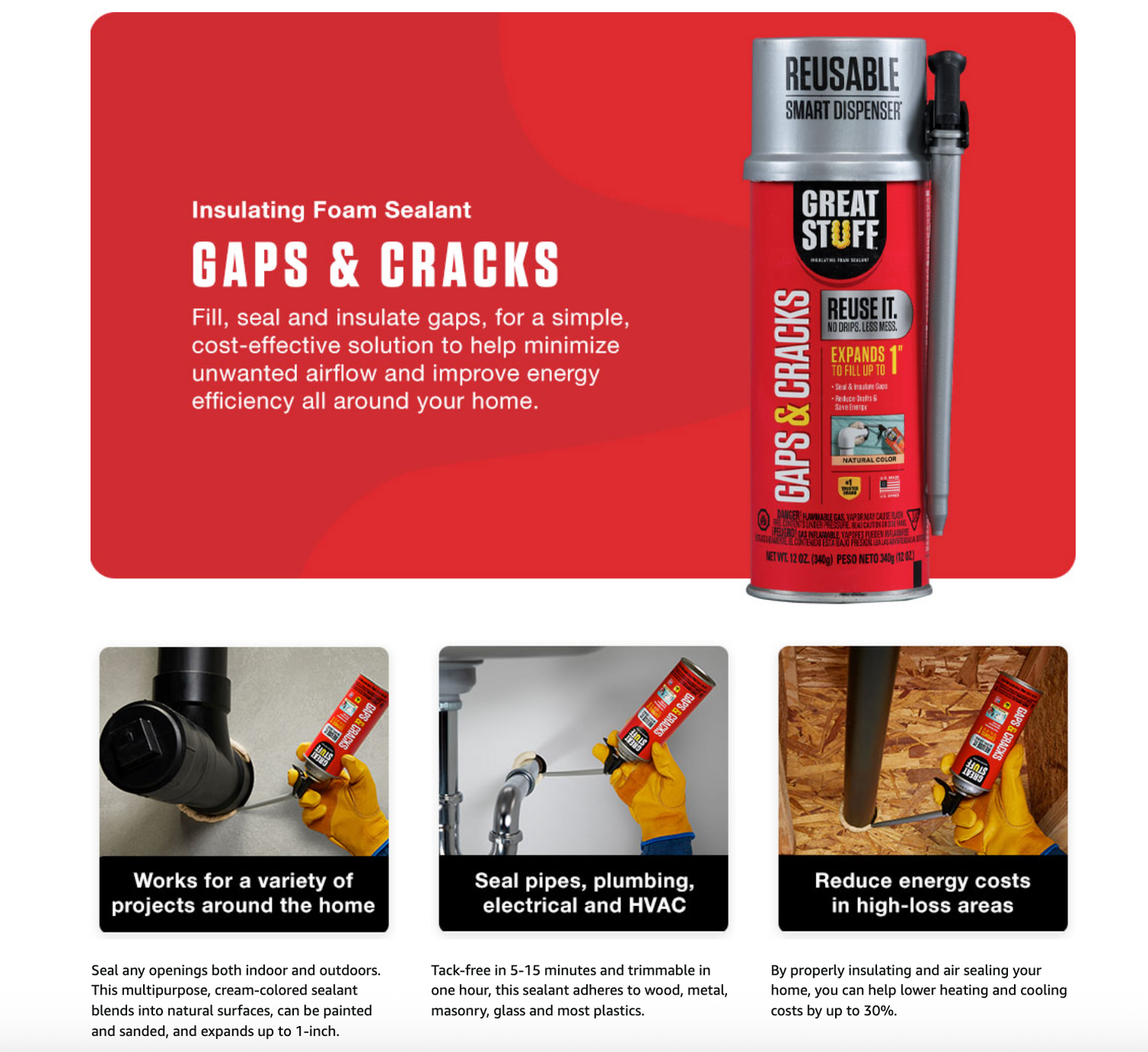 • Gaps & Cracks foam sealant