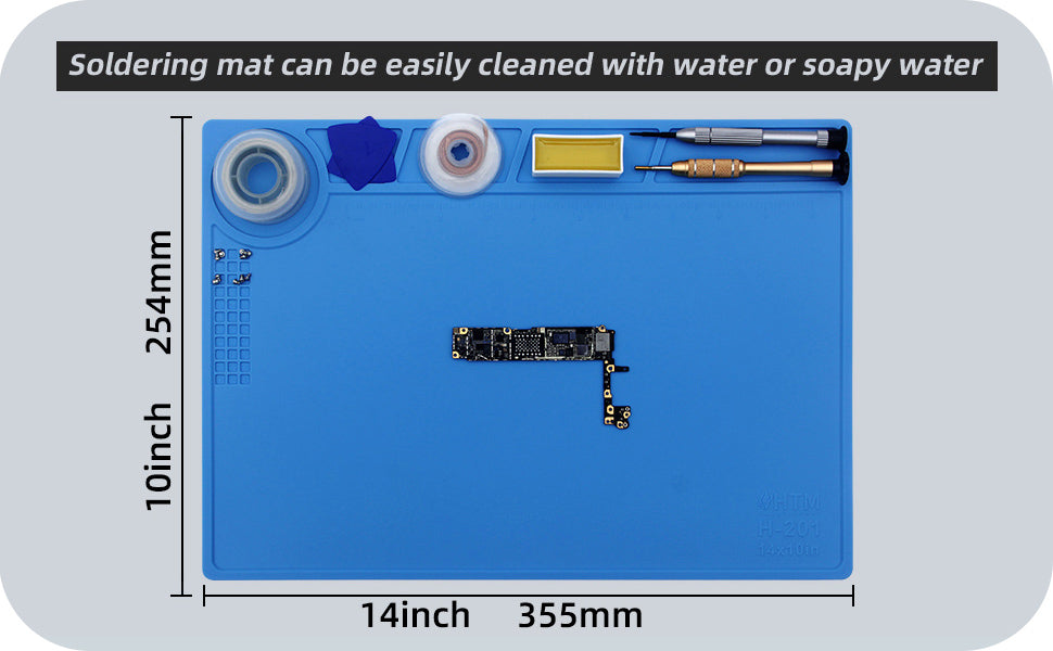 • This Soldering Mat is made of high quality silicone, It resists corrosion and out of shape, Its texture is soft, solid and durable, Soldering Mat both surface and back side are adopting the anti-slip design
