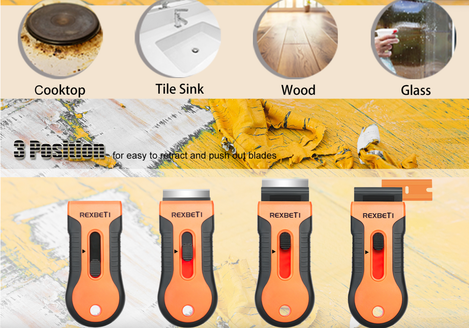 • REXBETI razor scrapers are built with high quality and durable design that can achieve heavy-duty use. The sturdy construction is reliable and long-lasting providing you with greater durability, ensuring you can easily tackle tough tasks