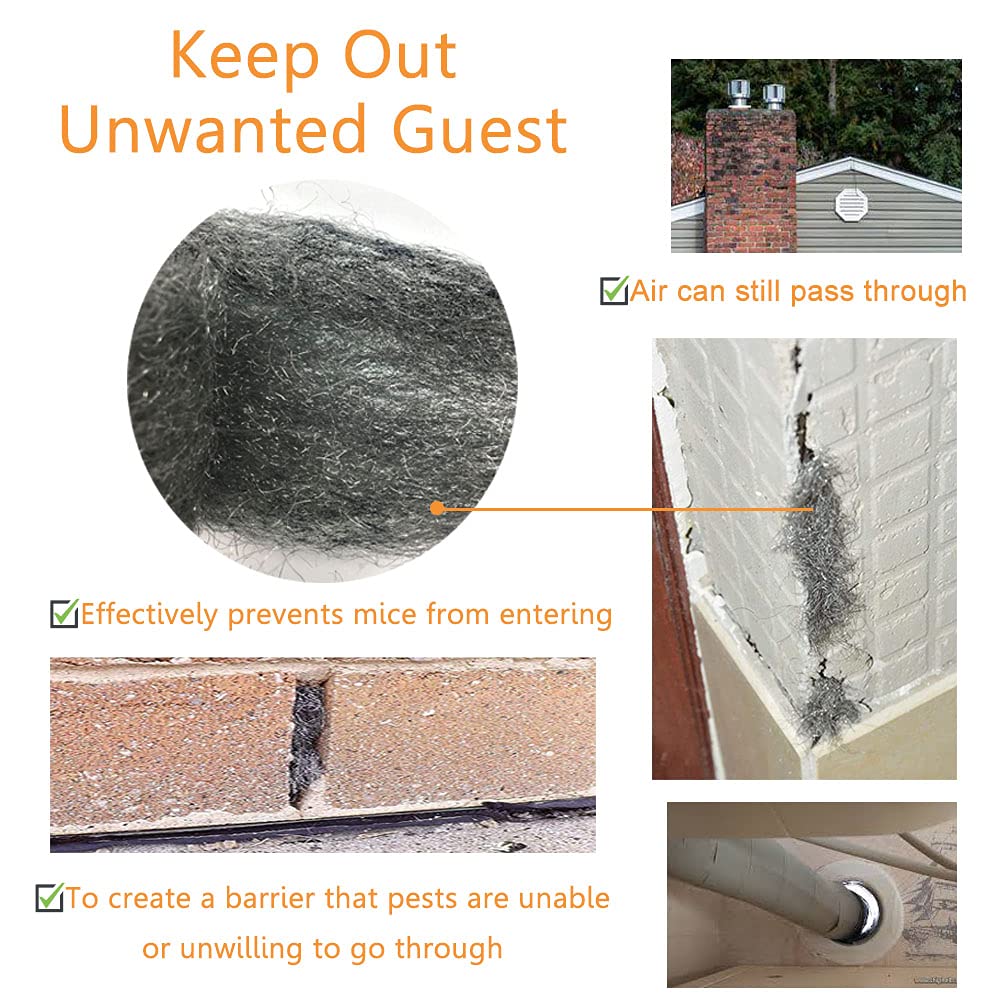 STEEL WOOL for MICE - Steel wool is made of thousands of high-quality metal fibers, similar to wool, which is thick and strong and can be flexibly bent to every corner. - To create a barrier that pests are unable or unwilling to gnaw through. Effectively prevents mice from entering. - Non-corrosive material ensures durable and reliable performance, that small creature cannot chew through the steel fibers, But air can still pass through.